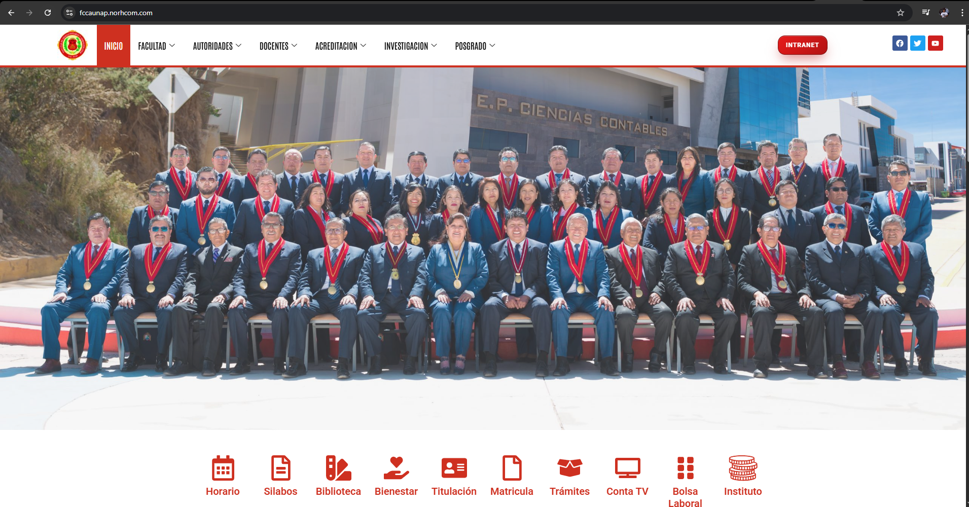- Inicio con secciones destacadas, horario y botones de acción.